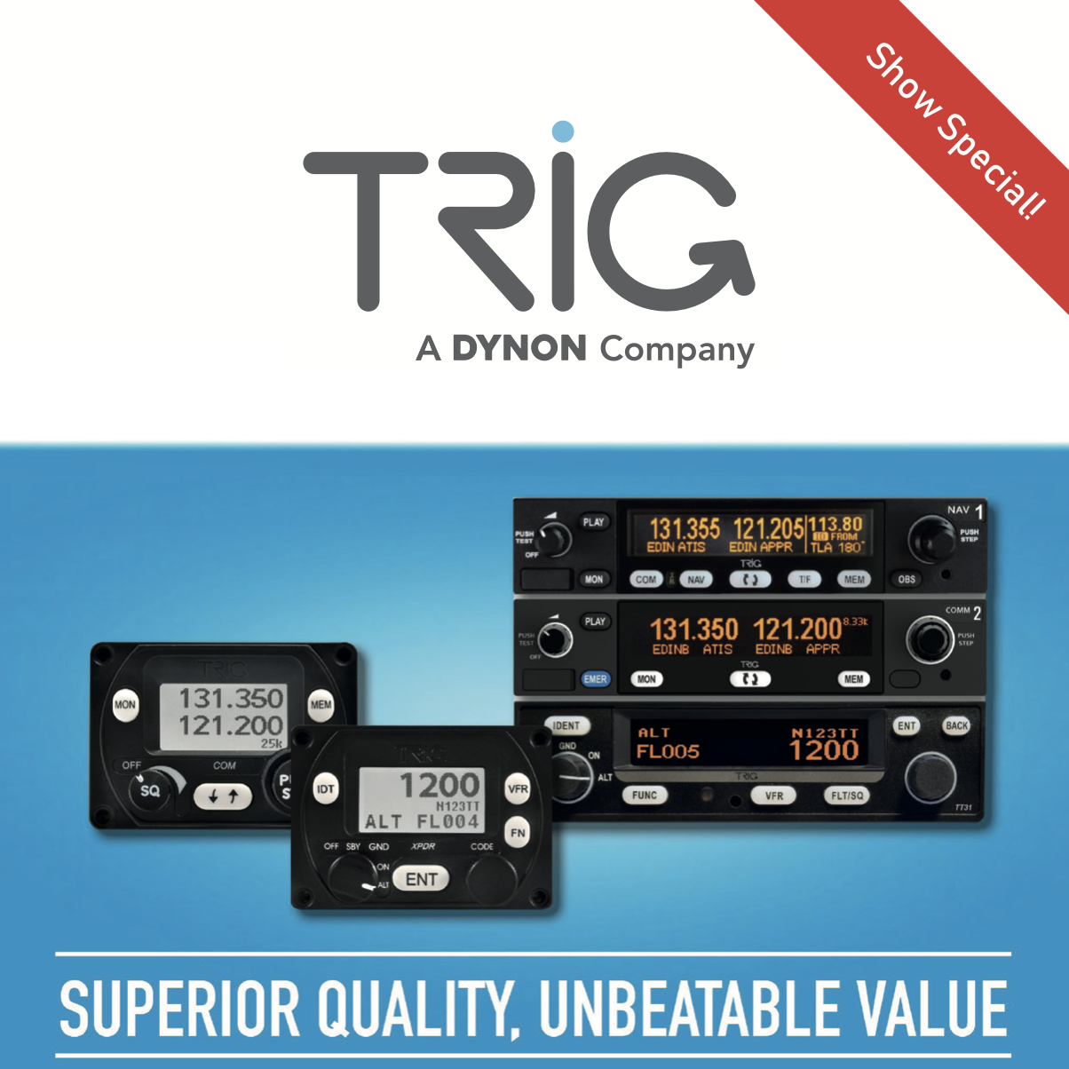 Enjoy $100 OFF Trig’s certified high performance avionics only at Sun n’ Fun – from Approved Trig and Dynon Dealers.